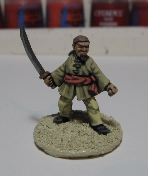 Tout d'abord les travailleurs chinois de la blanchisserie Ming Ling Foo pour débuter à Dead Man's Hand ce vendredi, c'est des pirates Wargames Foundry reconvertis et peints avec les triades ( normal pour des chinois ,vous me direz!)